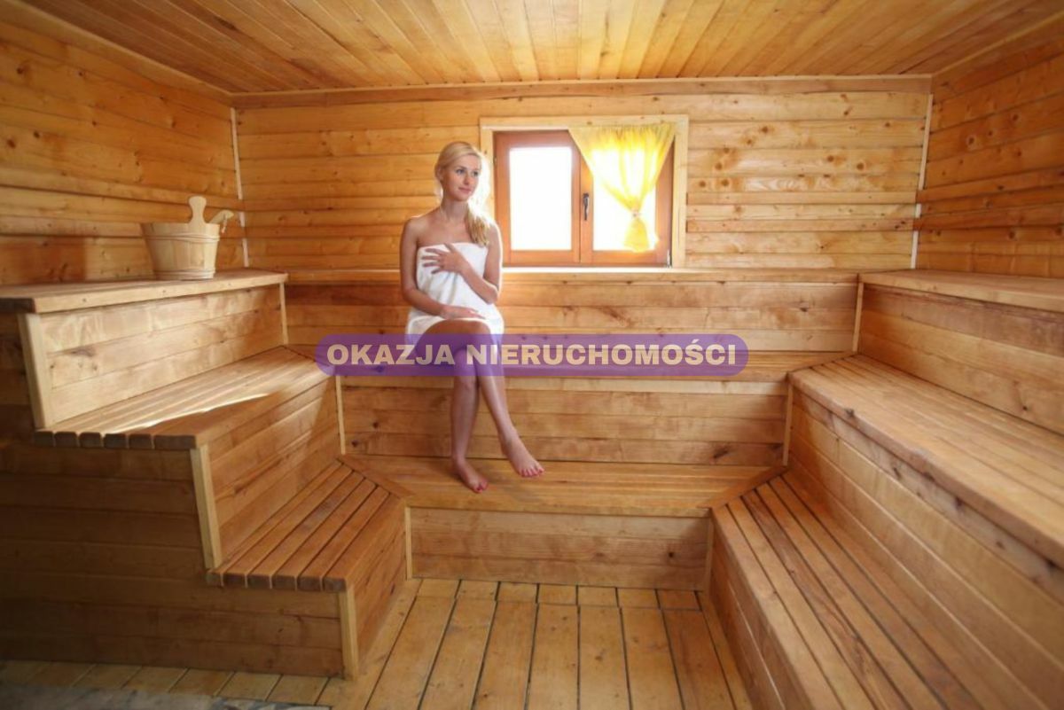 Sauna fińska - zbudowana z bali drewnianych, przeznaczona dla 20 osób, wyposażona w prysznice i przebieralnię.